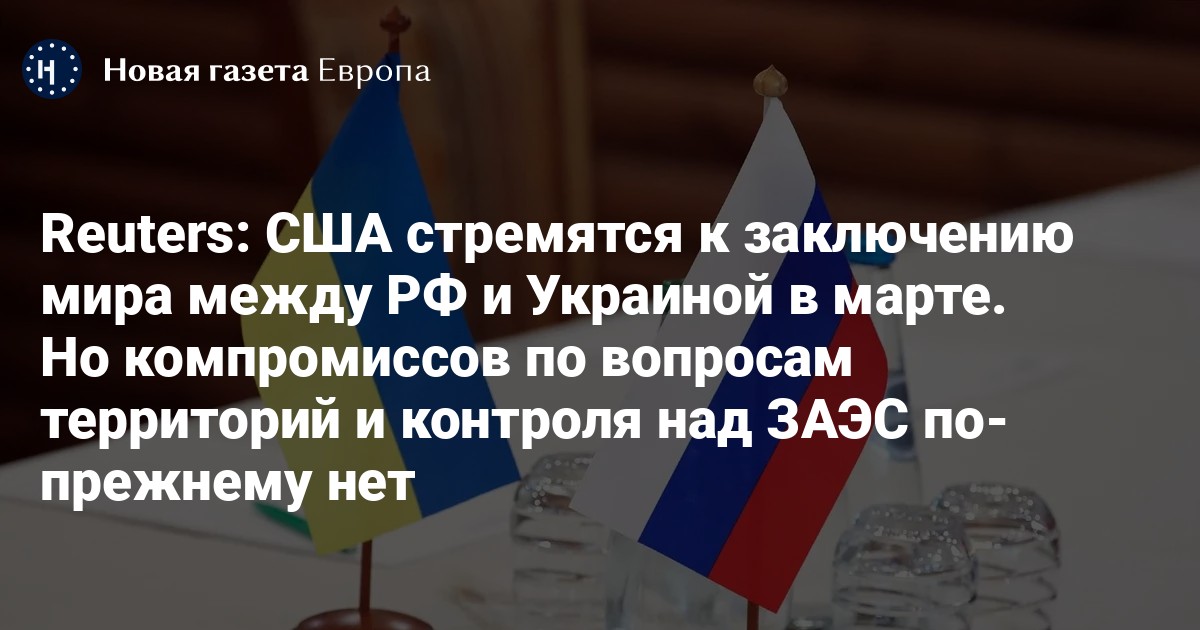 Представители США и Украины на переговорах обсудили амбициозную цель — заключить мирное соглашение между Россией и Украиной уже в марте. Об этом сообщает Reuters со ссылкой на несколько источников.
