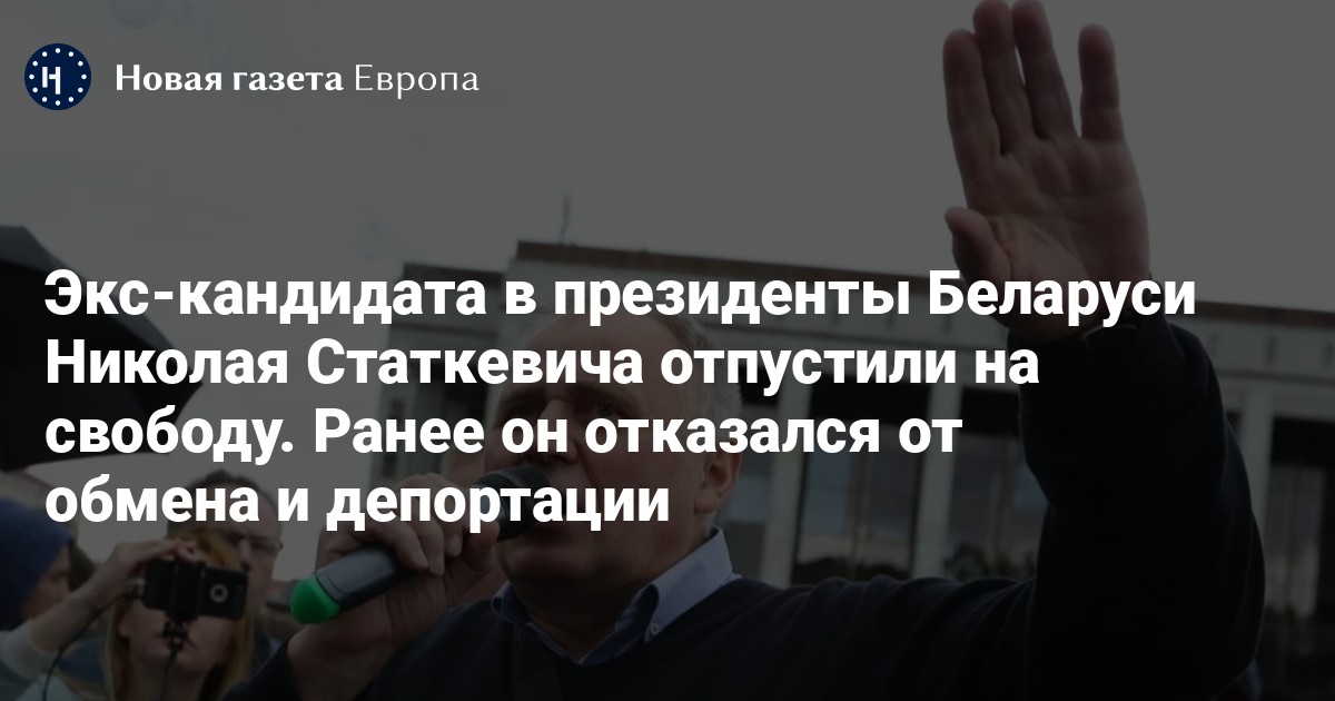 Я искренне желаю ему сил, здоровья и как можно скорее восстановиться после перенесённого инсульта. Сейчас важно, чтобы Николай получил необходимое лечение, тепло семьи и поддержку близких», — прокомментировала освобождение Статкевича Светлана Тихановская.