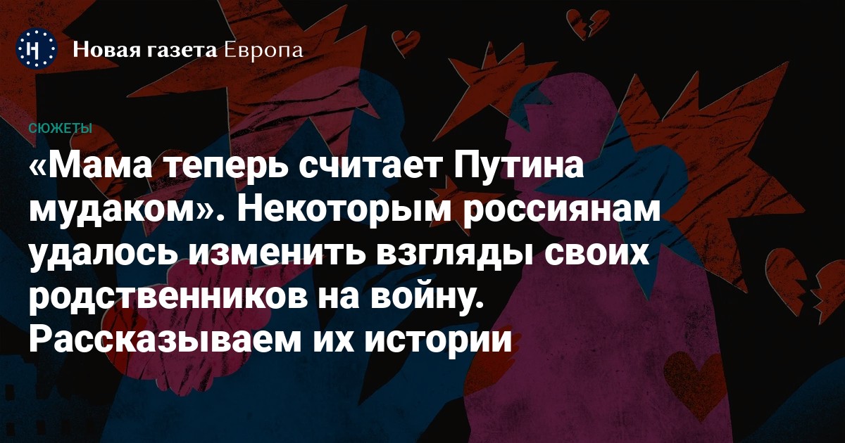 Даже когда Кирилл приводил ей аргументы о неправедности войны, о событиях в Буче и Мариуполе, мать не верила: