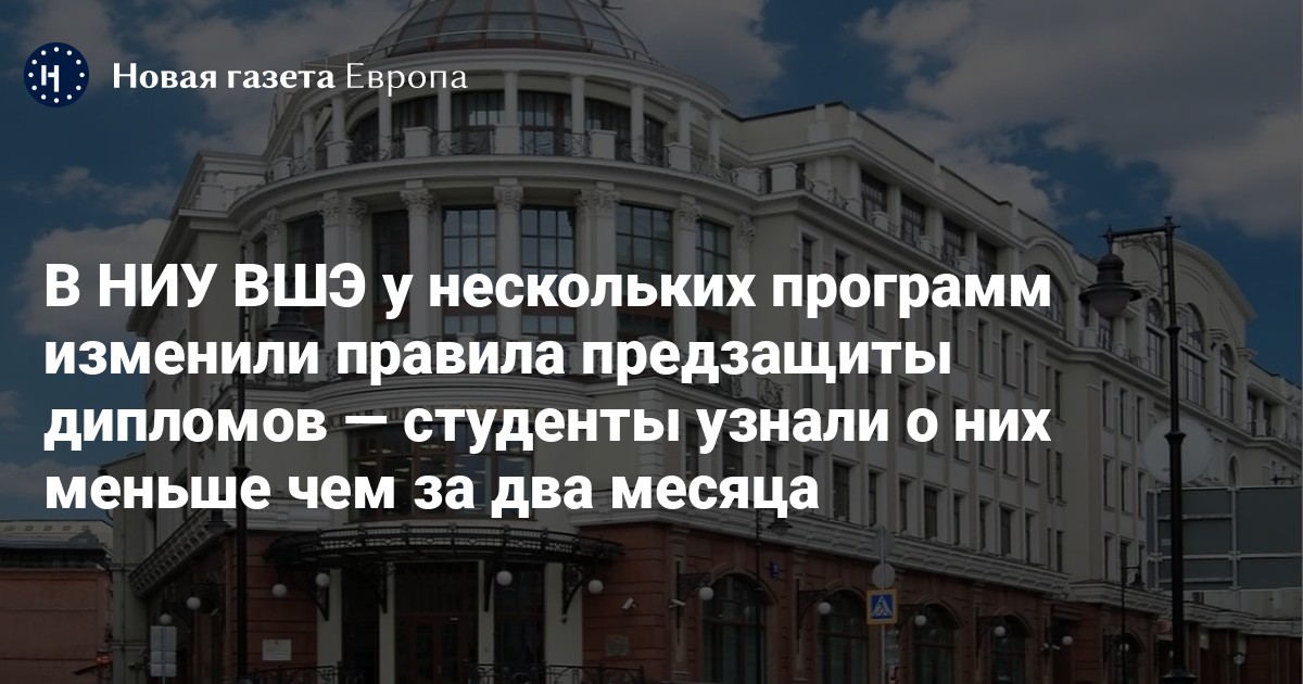 В НИУ ВШЭ у нескольких программ изменили правила предзащиты дипломов — студенты узнали о них меньше чем за два месяца