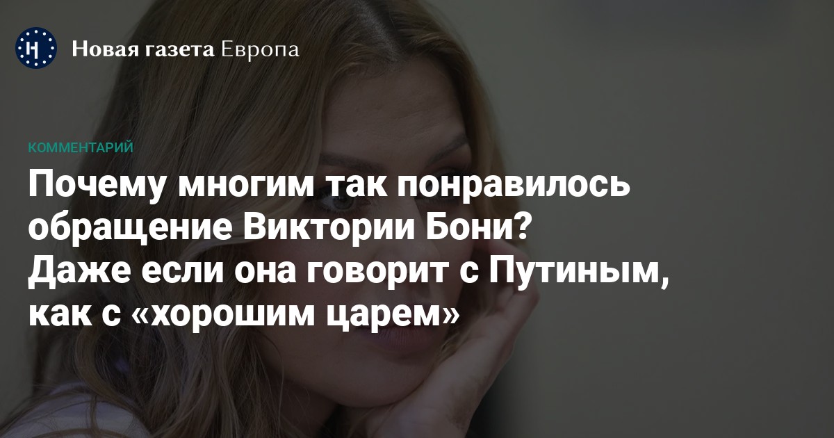 Самая противоречивая часть обращения Бони состоит в том, что она одновременно говорит о страхе, несправедливости и тяжелой жизни и тут же утверждает: проблема не в самом Путине, а в том, что ему «не говорят правду».