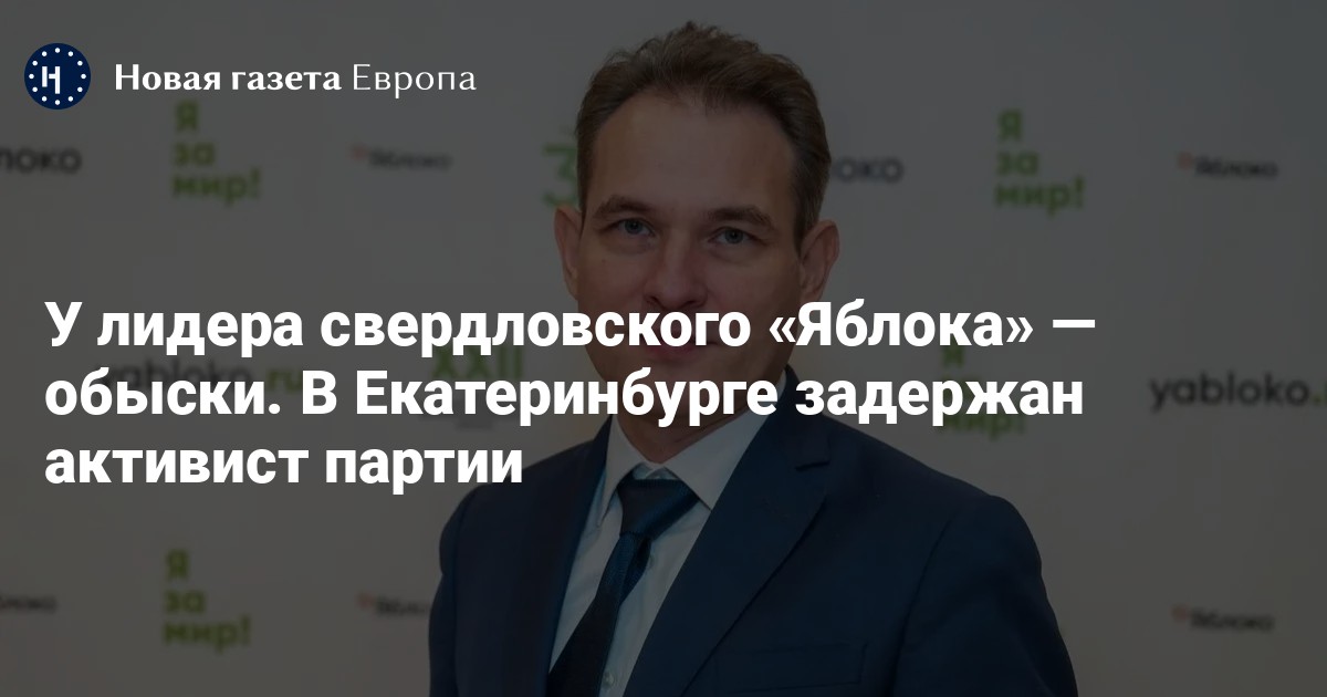 В Свердловской области прошли обыски у председателя регионального отделения «Яблока» Максима Петлина, сообщила пресс-служба партии. Петлина также задержали и доставили в отдел, уточняют источники «Новой-Европа»
